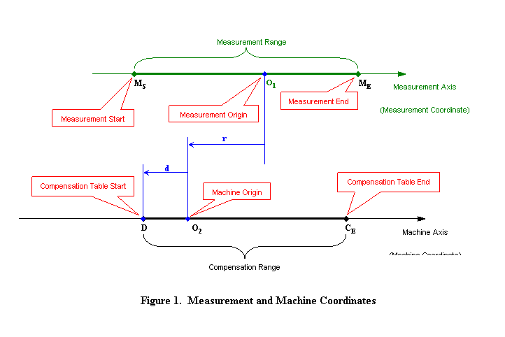 Start of compensation table This value determines the start of compensation table in machine coordinate, which is d in Figure 1. If compensation start point D locates at the right of machine origin O2, then d > 0. If compensation start point D locates at left of machine origin O2 as in Figure 1, then d < 0. This value is also the datum in compensation table.